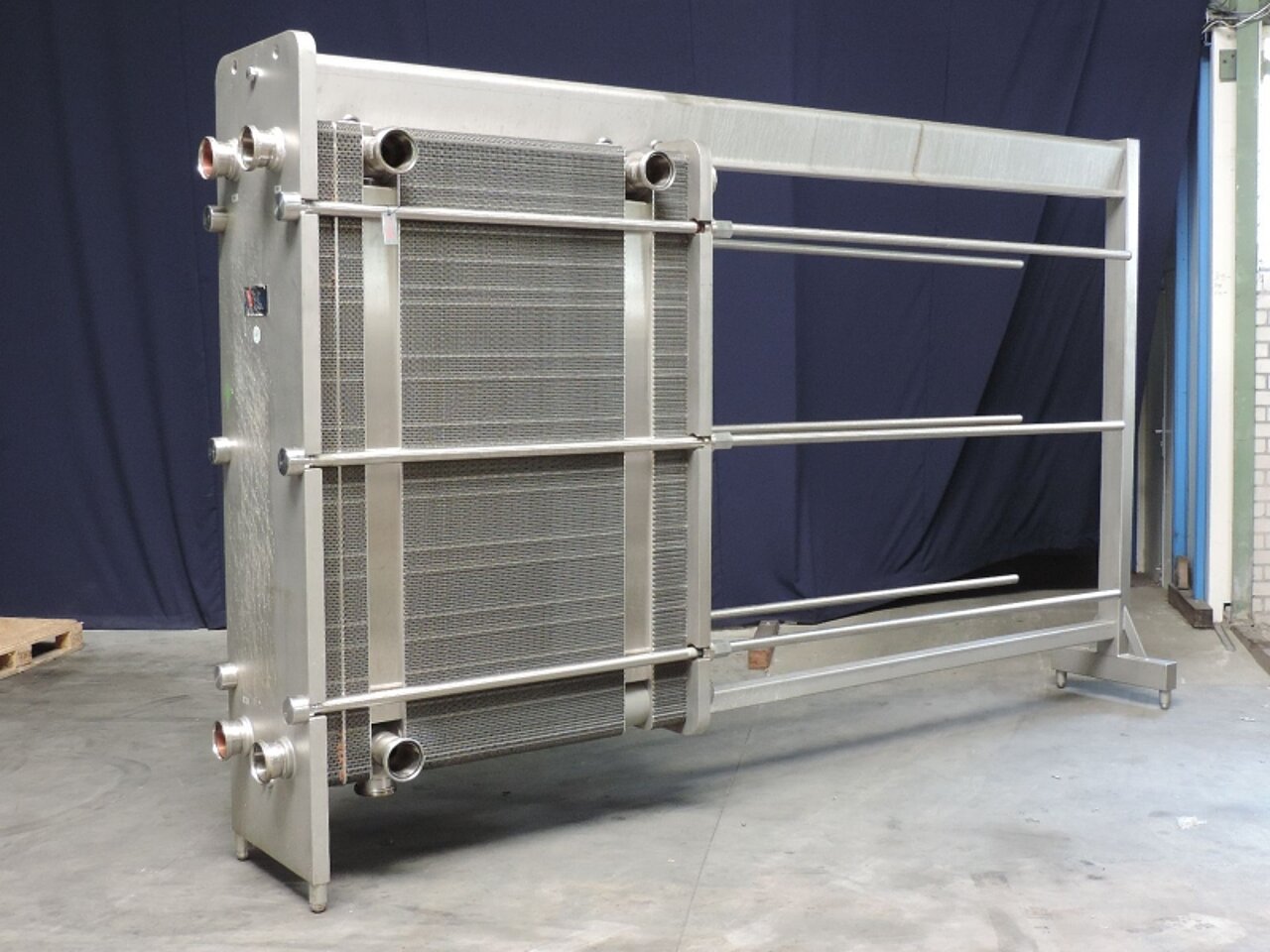 There is a special type of plate heat exchanger for the condensation of halogenated refrigerant fluids called “brazed plate heat exchanger”. The brazed plate heat exchanger has the characteristic of being a stainless steel plate heat exchanger where the gaskets are absent. It is assembled using a special vacuum furnace brazing technology, which makes it possible to create a very compact, durable and highly reliable unit. Brazing spots hold the various plates together, and the heat exchanger is tightly fixed. Now with our Wobble technology we can replace all complex and expensive brazing by simple laser welding, which goes much faster, cost much less and is more rigid.