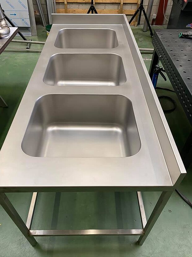 The traditional welding method of welding stainless steel sinks is not only barely satisfactory in appearance, but often leaks at the weld seam. The deformation is large, the dark colouring is wide and the subsequent post-processing process of grinding, polishing and cleaning is complicated and expensive.