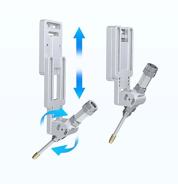 At the heart of the Laser welding system is a compact Laser welding head with an integrated programmable dual axis laser optics. A robot holder connects the Laser head to a standard industrial robot. This gives the PhotonWeld R Laser welding head the flexibility it requires to access difficult-to-reach areas of the workpiece. The welding wire can be placed in any position with respect to the laser beam, enabling the joining process to be adapted precisely to the wide variety of weld-seam preparations, outputs, wire types, wire grades and joining tasks.
