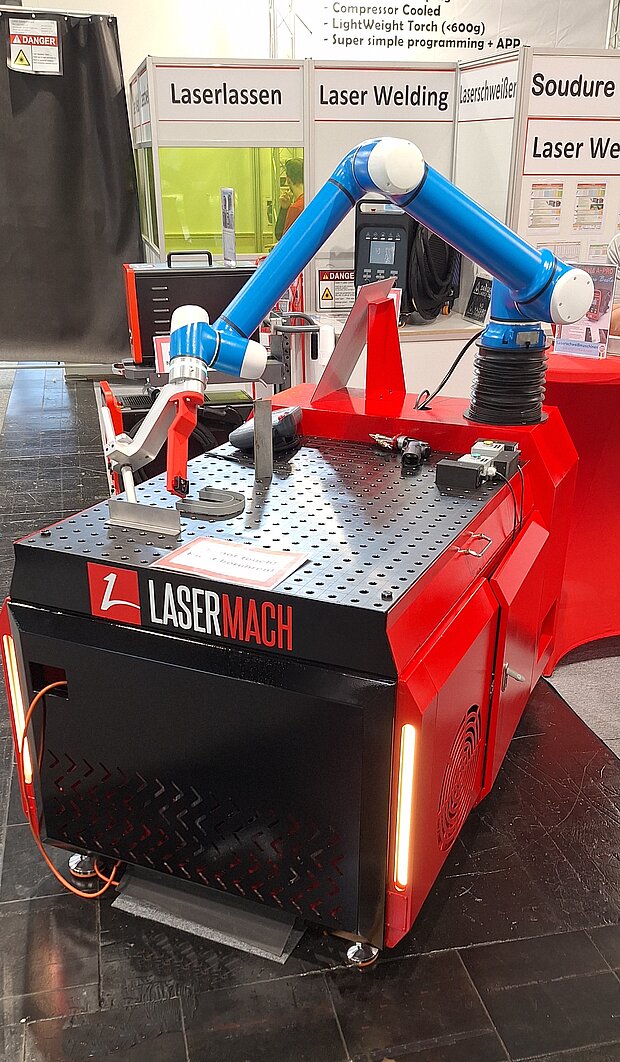 Lasermach offers an easy and fast-to-set-up cobot welding solution consisting of a PhotonWeld A-Pro Laser welding machine (incl. power source, wire feeder, welding torch) as a base, compact Digital Interfacing Module (DIM), and an A-Pro-C torch holder.  The DIM module connects the laser welding machine with the cobot. For the laser welding machine, Lasermach has a range of 3 different cobot-ready alternatives. The PhotonWeld A-Pro laser welding machines can be hooked up with cobots using the DIM interface.