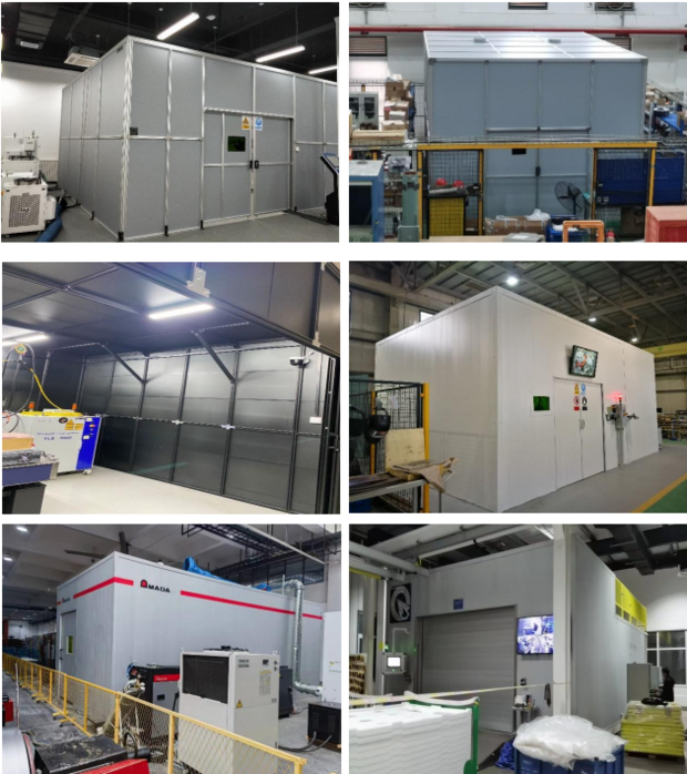 Our protection walls are designed for the protection of kilowatt-level laser, especially for high power laser welding and laser cleaning, laser processing workshop and laser device, with its characteristics of high level protection and flexibility.